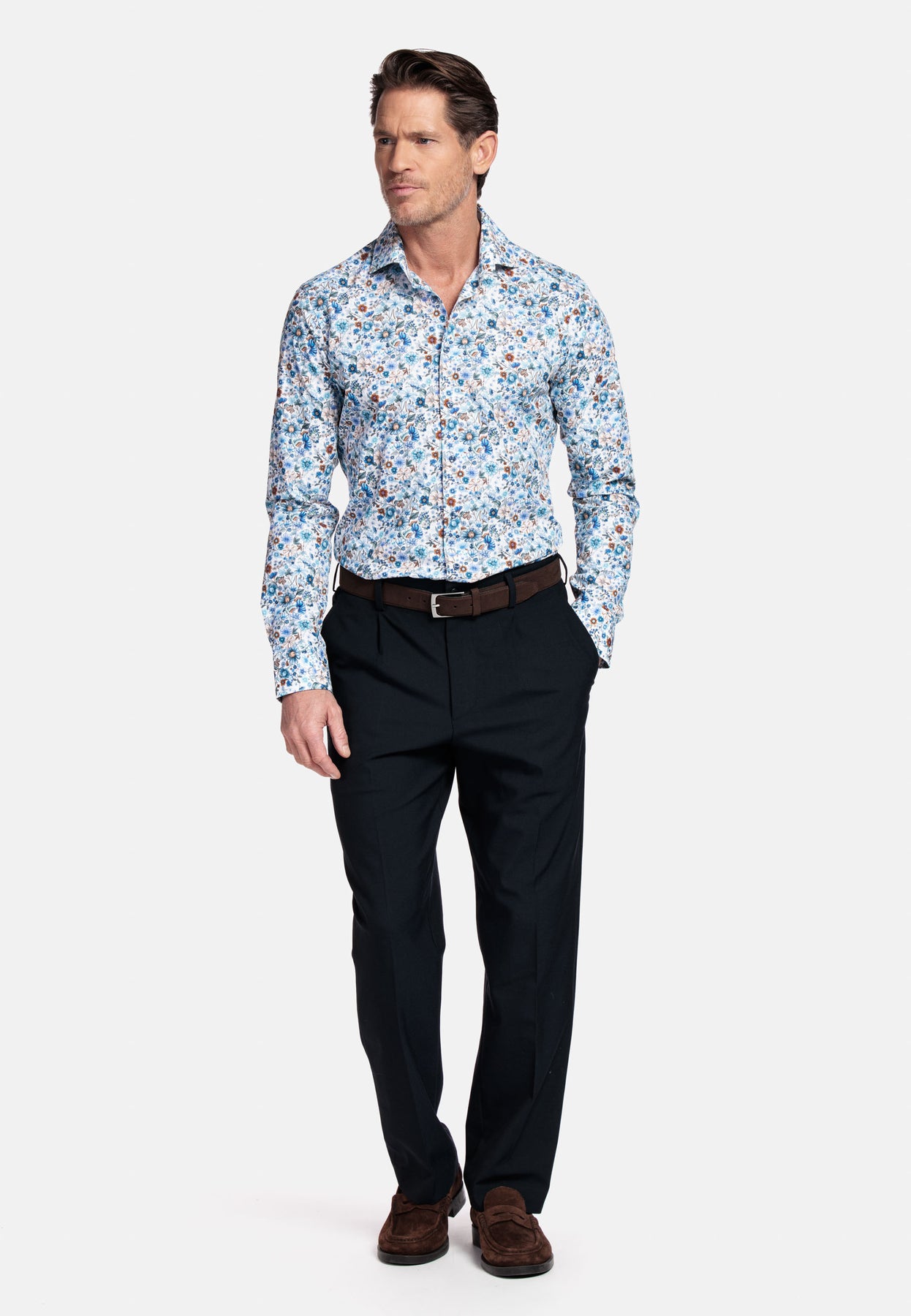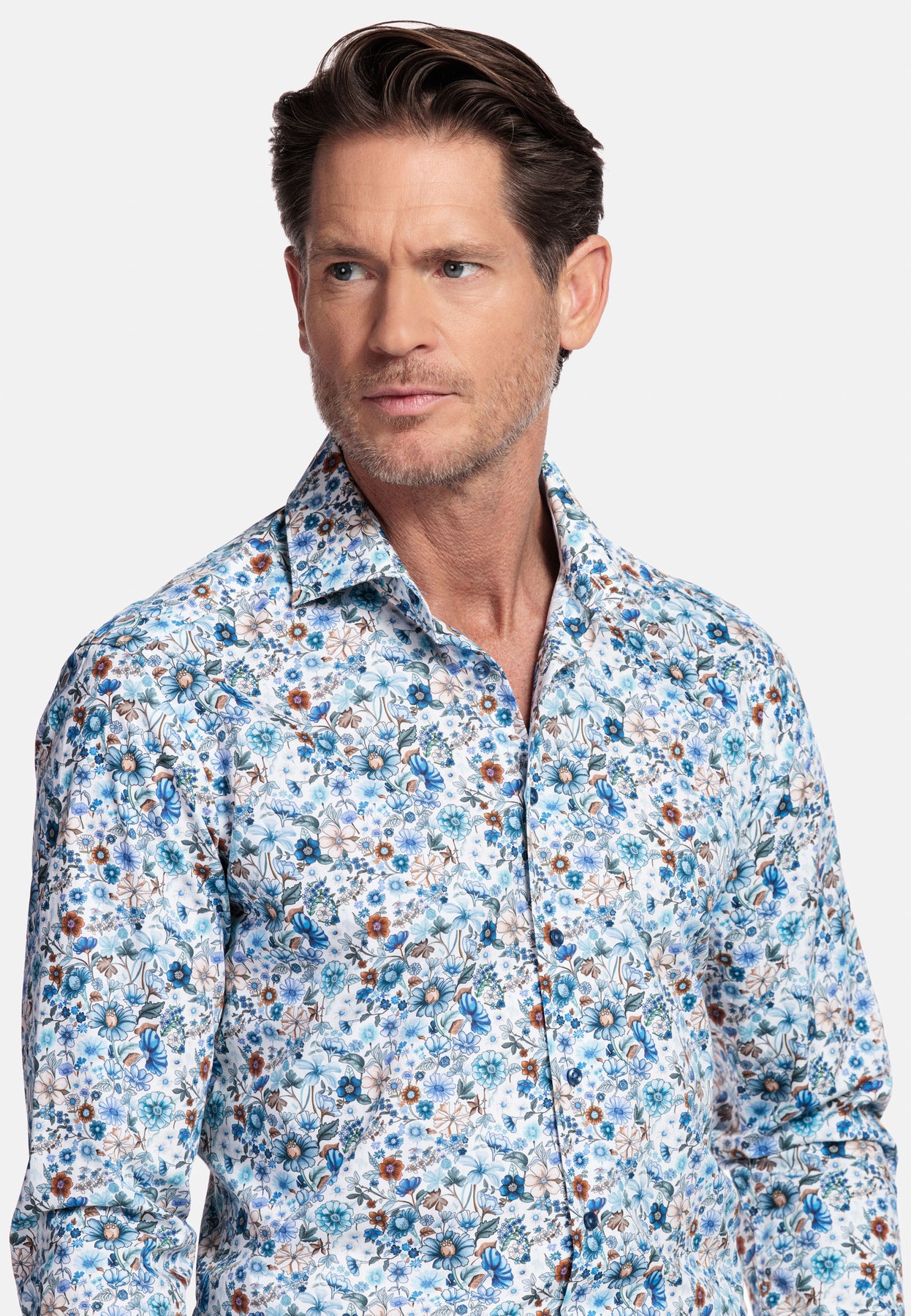 Locarno Long Sleeve Semi Cutaway Flower Print Overhemd