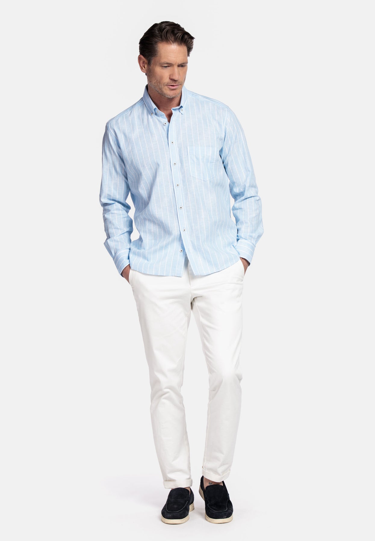 Brando Long Sleeve Button Down Linen Stripe Overhemd