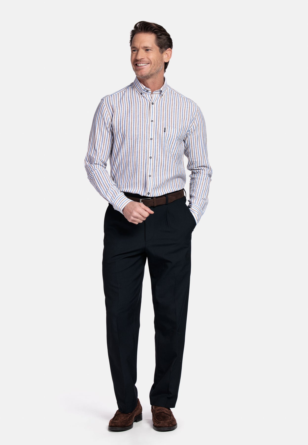 Ivy Long Sleeve Button Down Linen Stripe Overhemd