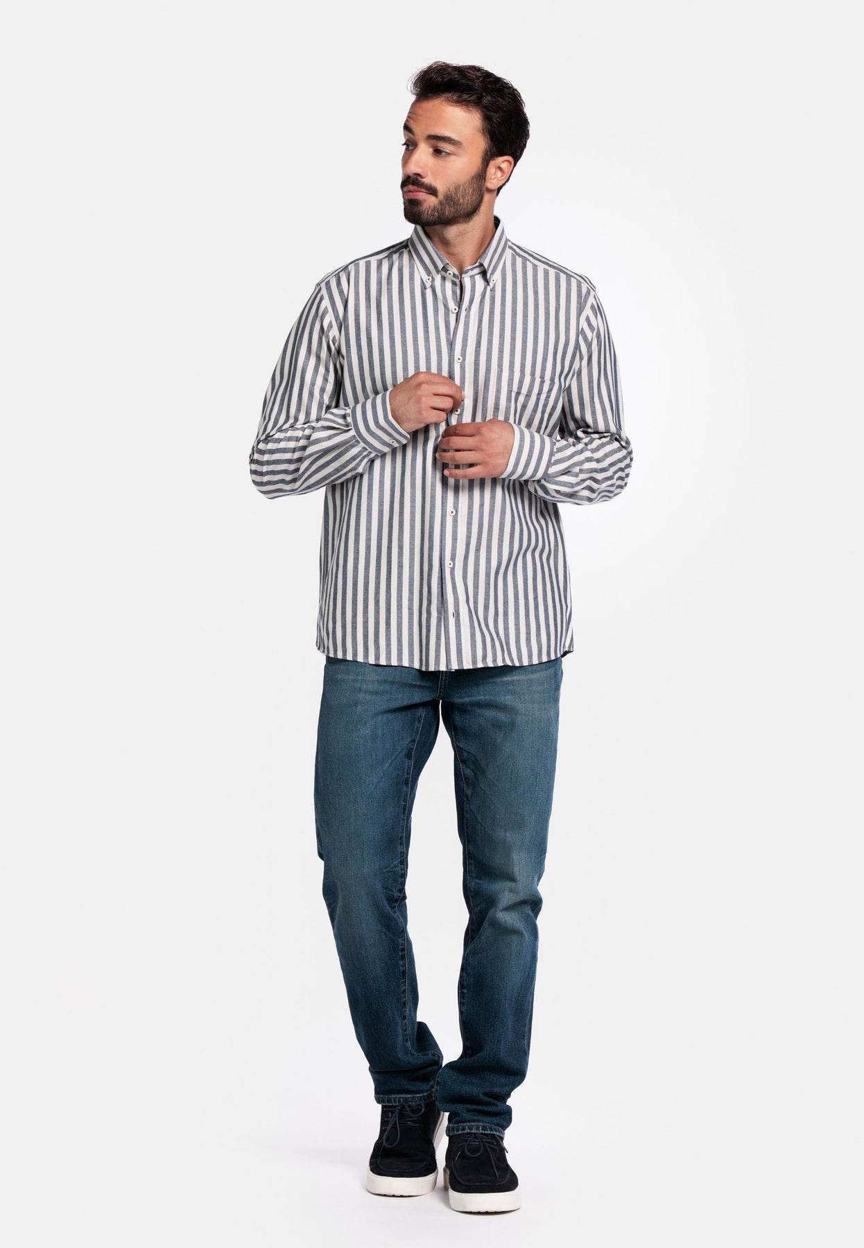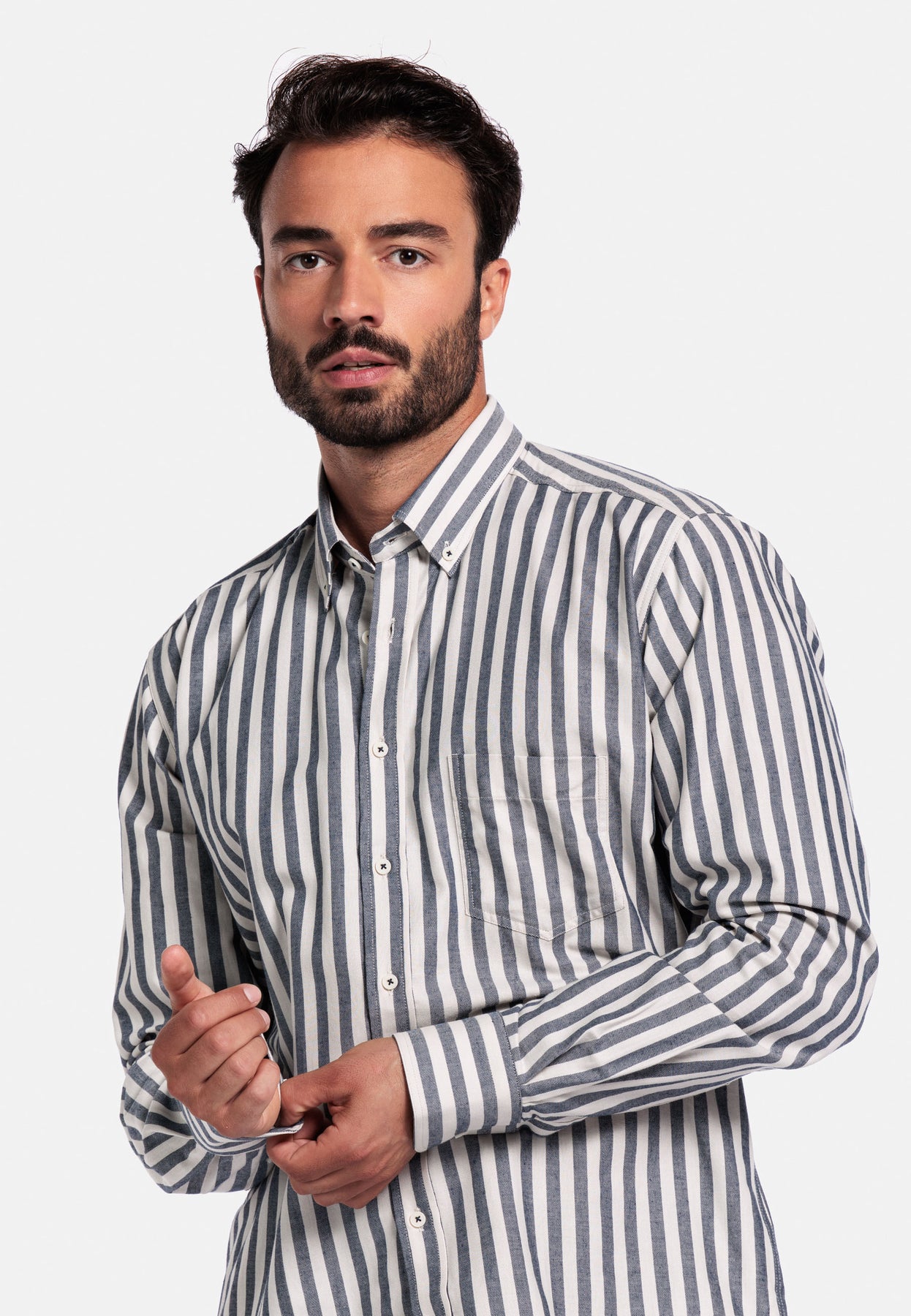 Reguliere prijs €84,95 Bespaar Liquid error (snippets/product-template line 131): Computation results in '-Infinity'%Brando long sleeve button down Soft twill stripe shirt